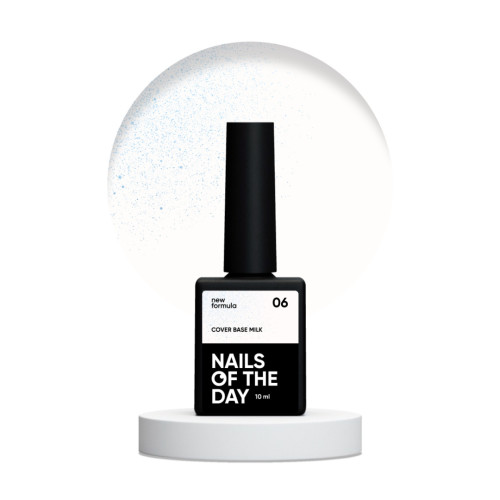 NAILSOFTHEDAY Cover base NEW Milk 06 - półprzezroczysta mleczna baza z niebieskim brokatem, 10 ml