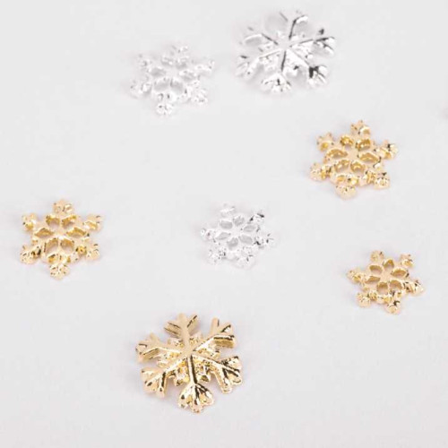 Ozdoby świąteczne gwiazdki śnieżynki w kasetce 5 x 6 wzorów 30szt Metalowe, biżuteryjne ozdoby do paznokci w kształcie płatków śniegu. Opakowanie zawiera śnieżynki w dwóch kolorach: srebrnym oraz złotych po 3 rozmiary z każdego koloru, dzięki czemu możesz dopasować ozdoby do każdej płytki paznokcia. Ozdoby będą idealnym uzupełnieniem świątecznych i zimowych stylizacji! Kasetka pozwala na wygodne użytkowanie i przechowywanie ozdób.