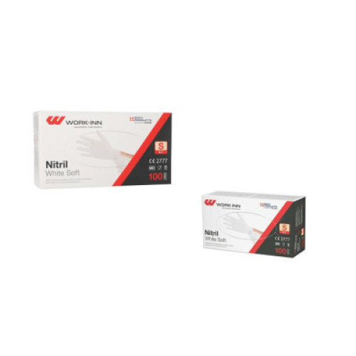 • Rekawiczki Work-Inn Nitrylowe S 100 Szt. - Biłe