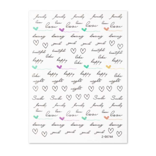 Naklejki do paznokci cienkie samoprzylepne serduszka napisy Z-D5744
