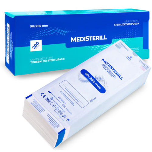 Torebki do sterylizacji narzędzi w autoklawie 90 x 260 mm samoprzylepne MEDISTERILL CLAVIER 200 szt. Foliowo-papierowe torebki z samoprzylepnym rantem przeznaczone do sterylizacji narzędzi w autoklawie.