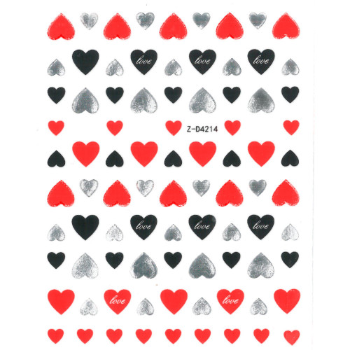 Naklejki do paznokci cienkie samoprzylepne serduszka Z-D4214 red silver czerwone srebrne