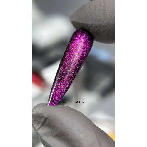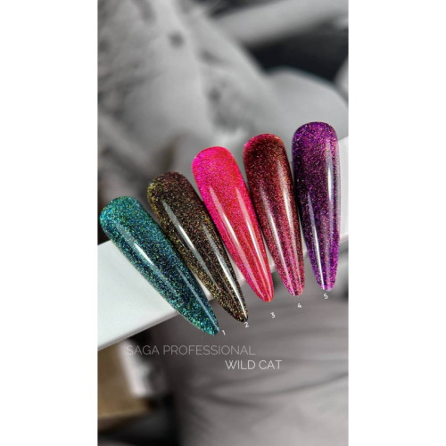 SAGA Professional Lakier hybrydowy Wild Cat, to kolekcja olśniewająco błyszczących, magnetycznych lakierów żelowych z efektem kociego oka. Mienią się w trzech różnych odcieniach. Optymalna gęstość zapewnia idealne krycie paznokcia w jednej warstwie wyrównującą. W razie potrzeby mogą być nakładane w dwóch warstwach lub na czarny podkład.