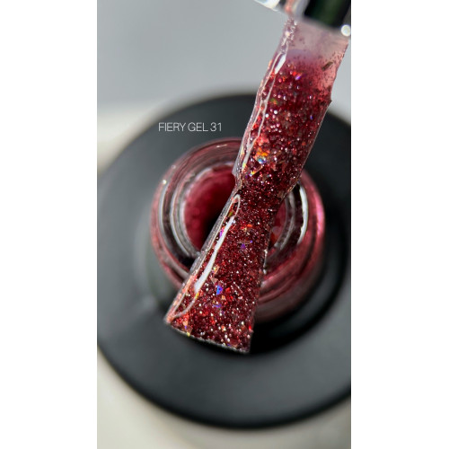 SAGA Professional Fiery Gel- to gęsty odblaskowy lakier żelowy z drobinkami i holograficznymi cząsteczkami folii.