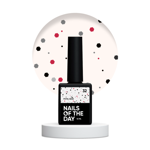 Potal base 32 to kryjąca biała baza z czarnymi i czerwonymi drobinkami.
