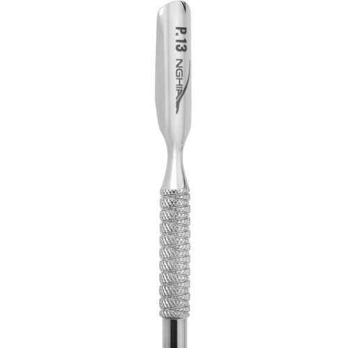 Kopytko Nghia P-13 posiada dwie końcówki, które umożliwiają precyzyjne odsuwanie skórek. Końcówka zaokrąglona jest idealna do delikatnych zabiegów, natomiast profilowana końcówka skutecznie usuwa skórki z boków paznokcia, co zapewnia doskonałe efekty końcowe.