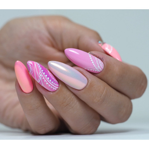 Pyłek do paznokci Aurora Mirror Flame 0,3 g Nr 2 Multimagiczny, wielobarwny i niezwykle zaskakujący hit tego lata! Zmień swoją stylizację w odbijającą światło taflę która na pewno podbije Twoje serce a koleżanki będą Ci zazdrościć. Sposób aplikacji: Wetrzeć pyłek w Mirror Top MollyLac bez dyspersji lub w dyspersję dla uzyskania niejednolitego koloru - pacynką lub silikonowym pędzelkiem. Nadmiar usunąć miękkim pędzelkiem i pokryć ponownie topem. Pojemność: masa netto pyłku ok. 0.3 g, pyłek pakowany w słoiczek 3 ml