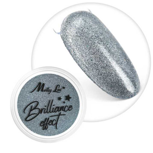 Pyłek Brilliance jest niezwykle prosty w aplikacji! Wystarczy posypać go na mokry top i utwardzić w lampie led/uv. Osiągniemy wtedy efekt szronu. Drugi sposób aplikacji to wcieranie na gładko w warstwę dyspersyjną bazy/ koloru. Topu, a następnie zabezpieczamy topem i utwardzamy ponownie, wtedy powierzchnia paznokcia będzie gładka, a wzór będzie przypominał tysiąc małych iskrzących drobin.