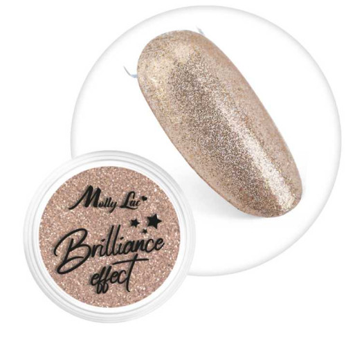 Brilliance effect – piękno, które zapada w pamięć! Mieniący się, drobny pyłek do zdobień, ornamentów i osypywania! Nadaj niepowtarzalny charakter i ciekawy efekt świetlny! Mieniące się milionem drobinek paznokcie to absolutny hit tego sezonu. Kuszący a nieprzytłaczający efekt, który wykonasz zarówno jako początkująca jak i doświadczona stylistka paznokci. Otul swoje dłonie luksusowym blaskiem delikatnych drobinek. Kobiece i niezwykle luksusowe pyłki w 13 odcieniach – wybierz swój wymarzony i ciesz się miękkim, jedwabistym wykończeniem stylizacji. Pyłek Brilliance jest niezwykle prosty w aplikacji! Wystarczy posypać go na mokry top i utwardzić w lampie led/uv. Osiągniemy wtedy efekt szronu. Drugi sposób aplikacji to wcieranie na gładko w warstwę dyspersyjną bazy/ koloru. Topu, a następnie zabezpieczamy topem i utwardzamy ponownie, wtedy powierzchnia paznokcia będzie gładka, a wzór będzie przypominał tysiąc małych iskrzących drobin.