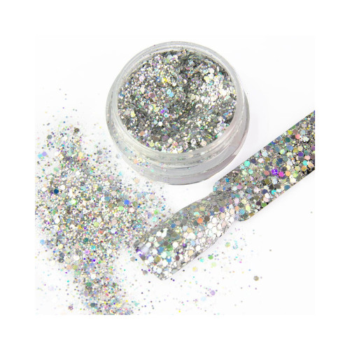 Wysmakowane dopełnienie Twojego manicure w stylu glamour! Biżuteryjny kolor laserowego srebra w holograficznym wydaniu. Idealne dopełnienie stylizacji w każdym kolorze. Wyraź siebie i eksponuj ekspresyjny look! Migoczące dodatki to genialny pomysł na każdą okazję.