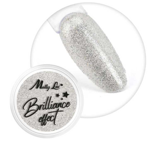 rilliance effect – piękno, które zapada w pamięć! Mieniący się, drobny pyłek do zdobień, ornamentów i osypywania! Nadaj niepowtarzalny charakter i ciekawy efekt świetlny! Mieniące się milionem drobinek paznokcie to absolutny hit tego sezonu. Kuszący a nieprzytłaczający efekt, który wykonasz zarówno jako początkująca jak i doświadczona stylistka paznokci. Otul swoje dłonie luksusowym blaskiem delikatnych drobinek. Kobiece i niezwykle luksusowe pyłki w 13 odcieniach – wybierz swój wymarzony i ciesz się miękkim, jedwabistym wykończeniem stylizacji. Pyłek Brilliance jest niezwykle prosty w aplikacji! Wystarczy posypać go na mokry top i utwardzić w lampie led/uv. Osiągniemy wtedy efekt szronu. Drugi sposób aplikacji to wcieranie na gładko w warstwę dyspersyjną bazy/ koloru. Topu, a następnie zabezpieczamy topem i utwardzamy ponownie, wtedy powierzchnia paznokcia będzie gładka, a wzór będzie przypominał tysiąc małych iskrzących drobin.