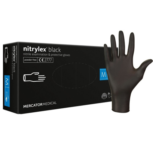 Rękawice Nitrylowe, Czarne, 100 par w opakowaniu, Bezpudrowe Mercator, rękawiczki nitrylowe Nitrylex to wysokiej jakości wyrób medyczny klasy 1, stanowiący skuteczne zabezpieczenie podczas wykonywania zabiegów diagnostycznych, terapeutycznych czy kosmetycznych. Doskonale sprawdzą się w każdych warunkach. Charakteryzują się dużą wytrzymałością na rozerwania i uszkodzenia.