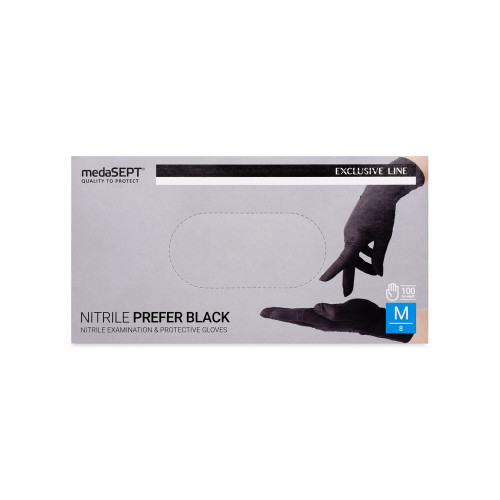 Rękawiczki Medasept to bezpudrowe rękawiczki diagnostyczne i ochronne, wykonane z nitrylu. Rękawiczki dostępne są w kolorze czarnym w rozmiarach: S i M. W opakowaniu znajduje się 100 sztuk. Syntetyczny nitryl zyskuje coraz większą popularność wśród osób stosujących na co dzień rękawiczki ochronne. Bardzo ważną przewagą rękawiczek nitrylowych jest zmniejszenie reakcji alergicznych w porównaniu do często używanych rękawiczek lateksowych. Rękawice nitrylowe charakteryzują się wyższą odpornością na przekłucia, są mocniejsze, lecz mniej elastyczne. Cienka warstwa ścian rękawic oferuje wysokie czucie trzymanych przedmiotów, co jest cenione podczas zabiegów. Atutem rękawic nitrylowych jest również stosunkowo wysoka ochrona na substancje chemiczne.
