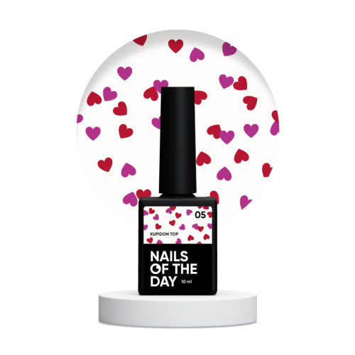 NAILSOFTHEDAY Kupidon top 05 — top z czerwonymi i różowymi serduszkami bez lepkiej warstwy, 10 ml